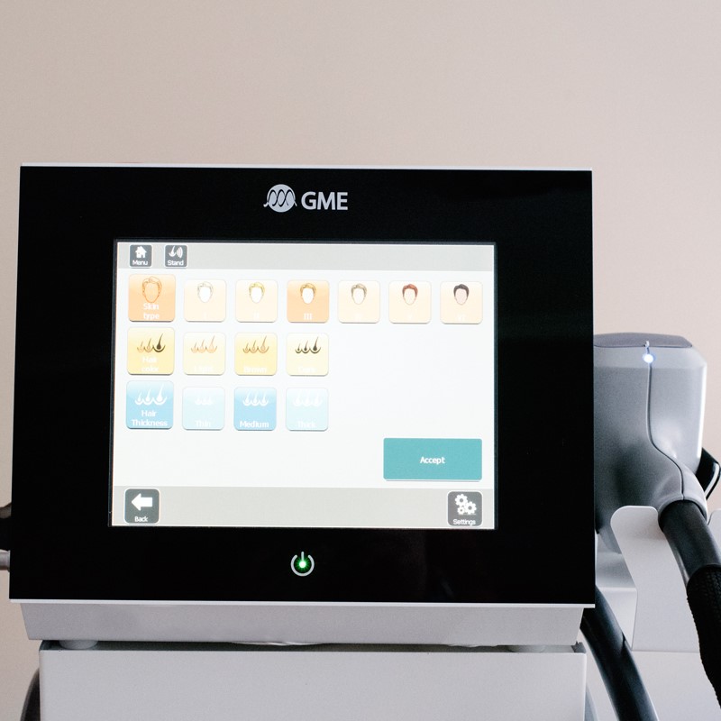 O LASER DIODO 808 nm GME® é um LASER Médico com uma inovadora tecnologia que permite a seleção personalizada das energias e da duração dos pulsos, adaptados à cor e diâmetro do pelo e ao tipo de pele. Diferencia-se também pelo seu sistema de varredura linear semelhante à digitalização de uma fotocopiadora e pelo seu forte esfriamento de contacto integrado, permitindo um tratamento mais rápido e praticamente sem dor.